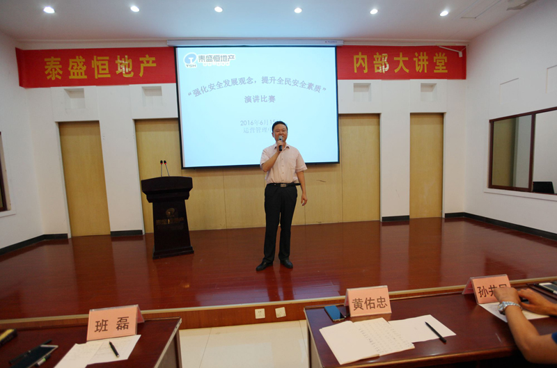 隱患險于明火,防范勝于救災,責任重于泰山。2016年6月15日,由運營管理中心組織泰盛恒地產、中匯地產、啟翔代理公司、港信裝飾公司、鴻豐園林公司全員及奧晟物業(yè)主管以上人員在六樓會議室舉行以“強化安全發(fā)展觀念,提升全民安全素質”為主題的演講比賽。來自各個中心、部門及分子公司的14名選手參加了本次演講比賽。